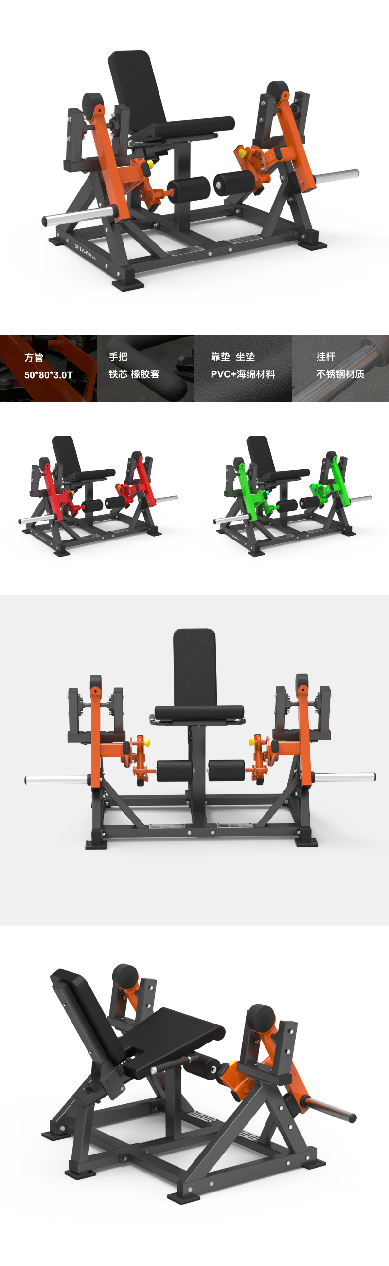 BFT-E25 BFT-E25 分動式大腿伸展 尺寸:1518x1462x1488mm 凈重:137kgs 主管:方管50*80*3.0T 手把:φ25 鐵芯+TPV橡膠套 靠墊/坐墊:PVC+海綿材料 掛桿:不銹鋼材質 最大承重:300kg 獲取報價