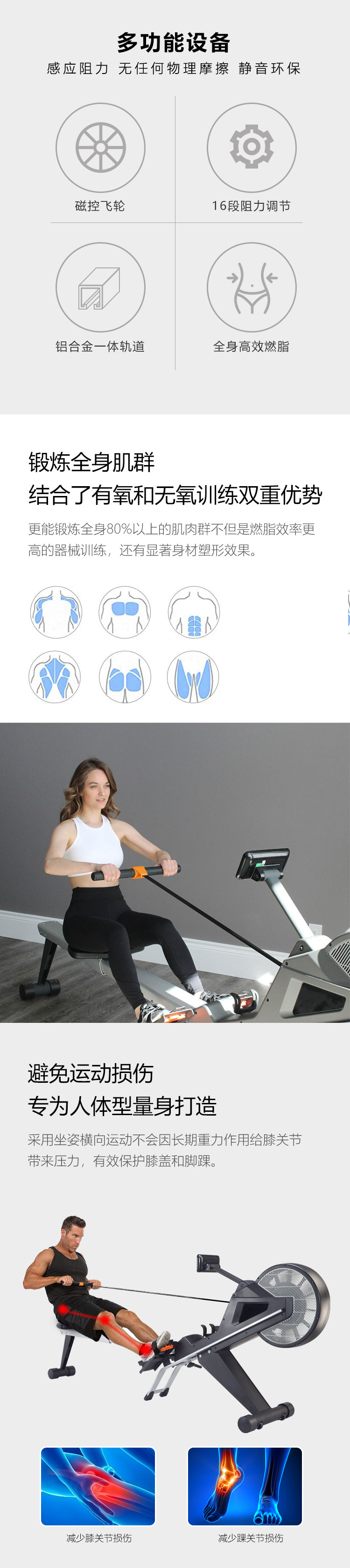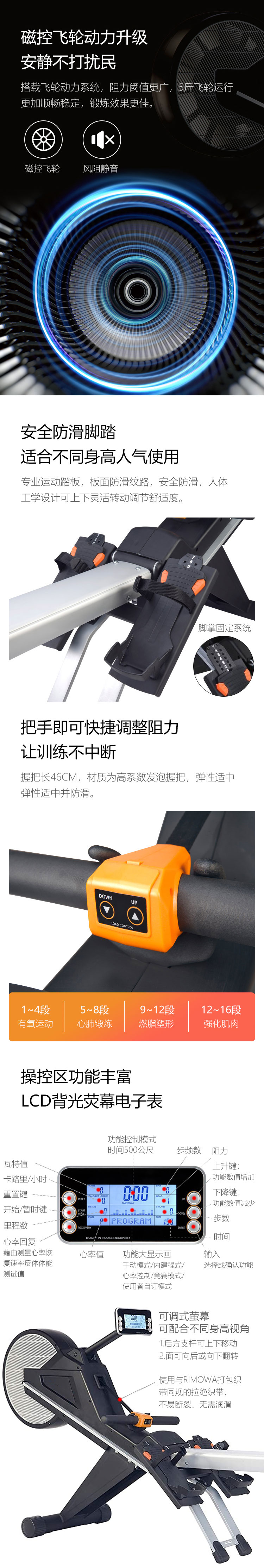 6. 顯示屏:速度、時間、距離、卡路里、功率、次數(shù)/總次數(shù)、500米所需時間、心率回復(fù)功能、心率控制系統(tǒng)、無線控制系統(tǒng);