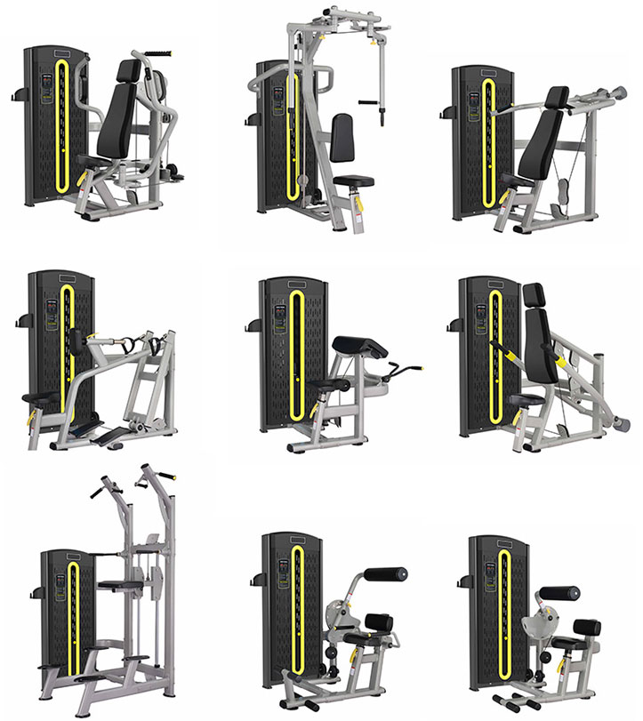 作為除有氧訓練、無氧訓練外,最重要的力量訓練方式,在提升訓練官兵運動中的身體姿勢、運動技能和專項技術動作起著穩定和支持作用。常見器材包括:坐式推胸訓練器、蝴蝶擴胸訓練器、直臂夾胸訓練器、二頭肌訓練器、助力引體向上訓練器、坐式高拉背訓練器、大腿伸展訓練器等。