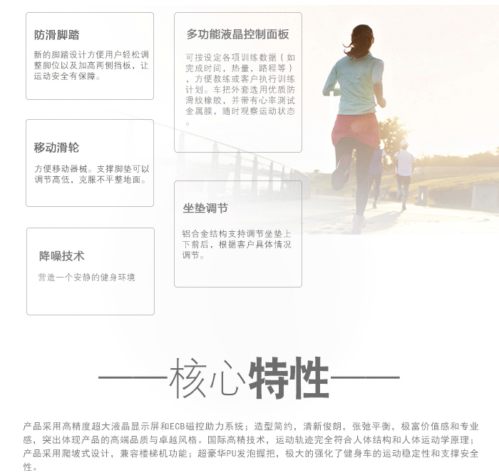 9.電子表主要功能: 速度,距離,手握心率,時間,熱量,掃描,總里程
