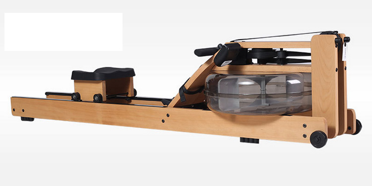 水阻劃船機有一個水箱,槳葉懸掛在水箱中。每次拉動手柄時,旋轉槳葉都會產生阻力。可以通過調節水箱中的水位來調節阻力。水箱的水位越高,劃船的阻力就越大,拉動就越要使力。