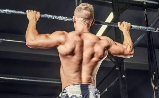 用單杠(或引體向上訓(xùn)練器)做寬握引體向上動(dòng)作,能鍛煉到三角肌的后束部位。