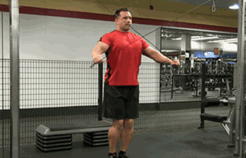 調(diào)整自己不同的體位,借用龍門架繩索做各種拉收動(dòng)作,能鍛煉到三角肌的前束、中束甚至后束部位。