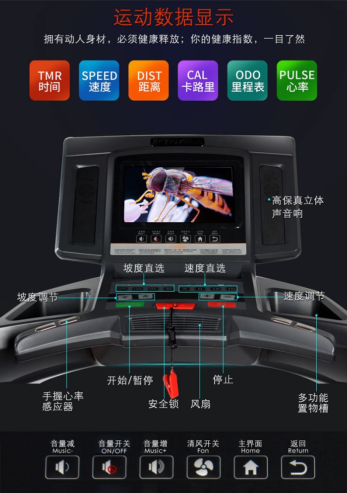 在選擇跑步機時,你還需要挑選適應自己的步幅長度的跑臺。要想在跑步機上行走、慢跑更加舒適,就一定要選擇一款符合人體工程學和美學的跑步機。此外,在高科技功能上,能放置平板設備、具備USB插口和無線上網(wǎng)功能的托架,是很多跑步機的標配。比方說,博菲特跑步機BCT04不僅擁有內(nèi)置音箱系統(tǒng);15”全彩色觸摸顯示屏,增加互動和娛樂性;還有可供放置手機、遙控器、毛巾、水壺等等雜物的集成托架。