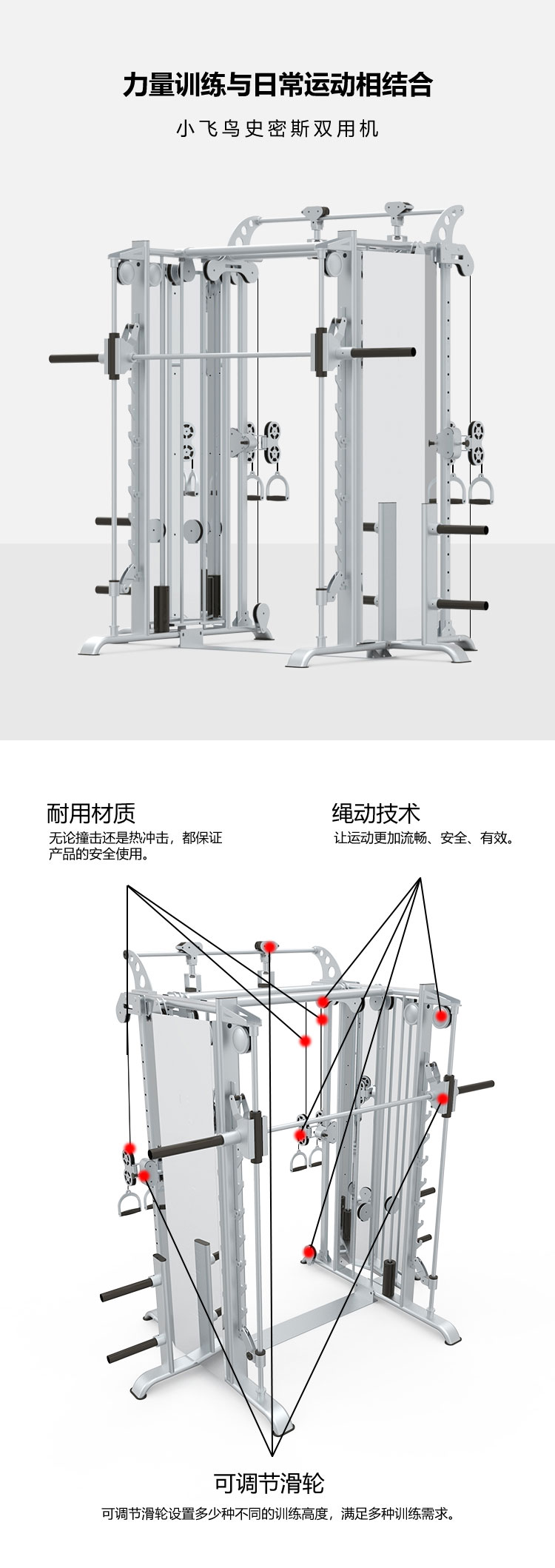 商用健身器材史密斯深蹲架是一種適合于健身房、酒店、俱樂部等商業場所的優質健身器材,它可以幫助用戶提升自信和魅力,享受健康和美好的生活。今天小編就為大家介紹一款博菲特新出的多功能史密斯小飛鳥組合健身器材。