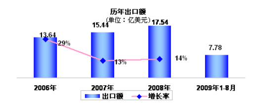 目前,我國已有眾多健身器材生產企業,世界上幾乎所有的普通健身器材類型,中國企業都在生產,并為大量的境外品牌進行加工,中國制造的健身器材在國際市場上占據了約60%的份額,出口交易額達 20億美元,出口已逐漸成為我國健身器材產業發展的方向。健身器材市場分為家用以及商用市場兩部分。隨著北京奧運會的舉辦成功,這也為健身器材行業提供了有利條件和發展機遇。人們對于健身器材,特別是家用健身器材的需求也日益增加。而家用市場的規模也遠較商用市場規模大,且增長快。 2008年 1-11月,中國健身用品制造行業規模以上企業實現累計工業總產值 62,499,521千元,比上年同期增長了 18.31%;實現主營業務收入 60,464,877.00千元,比上年同期增長了 17.93%;實現利潤總額 1,306,981.00千元,比上年同期增長了 0.01%。 2009年 1-11月,中國體育用品制造行業規模以上企業實現主營業務收 64,606,176.00千元,比上年同期增長了 6.29%;實現利潤總額 1,975,326.00千元,比上年同期增長了 56.9%。