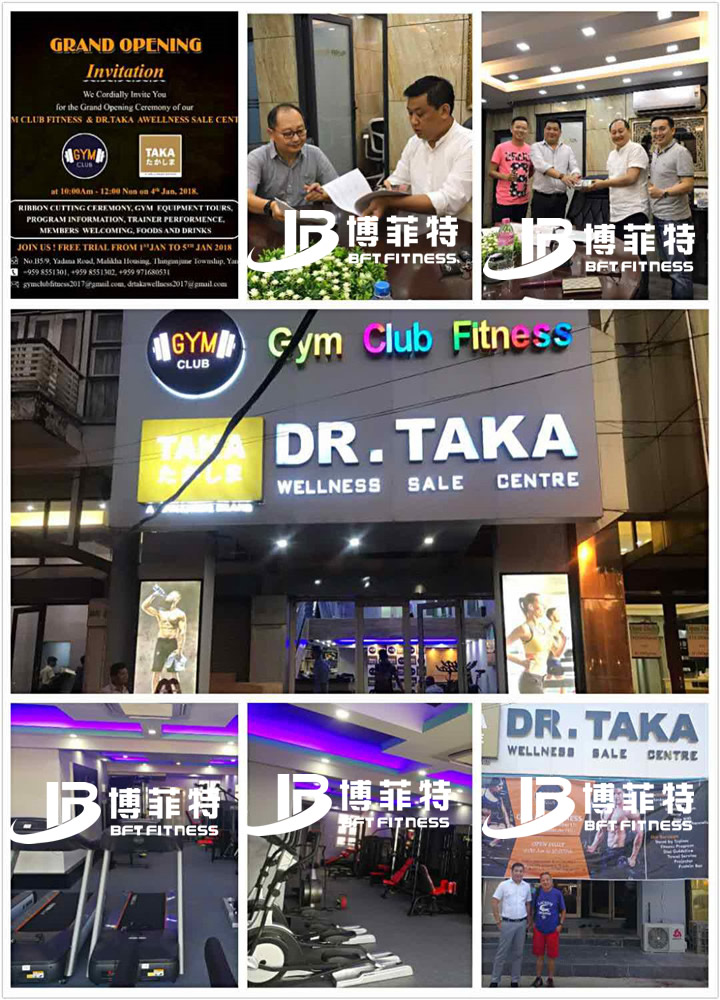 祝賀緬甸的客戶健身房成功開業,開業活動當天客戶贊揚了博菲特健身器材的質量,現場嘉賓也給了健身房以及健身器材極高的評價。客戶還在現場分享了如何從緬甸來中國進口博菲特的健身器材。