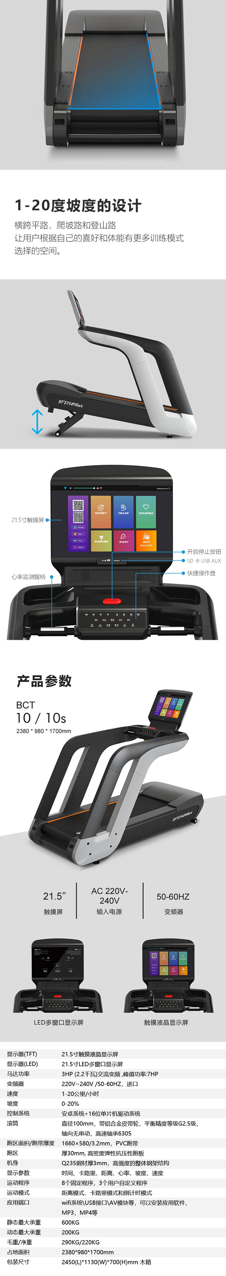 超強(qiáng)馬力大型跑步機(jī) 加寬跑帶健身房跑步機(jī)BCT15